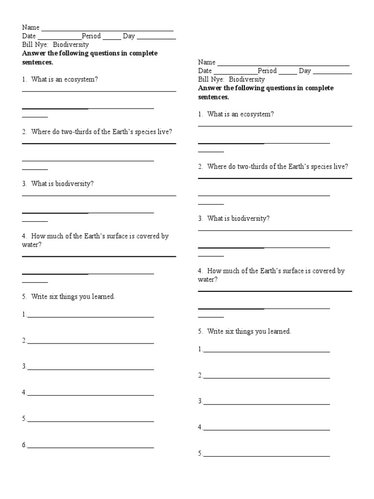 Bill Nye Biodiversity Worksheet Answers Printable And Enjoyable Learning