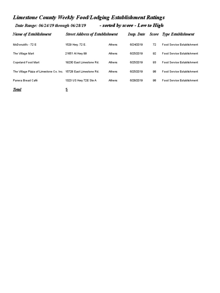 Limestone County Scores PDF Fast Food Foods