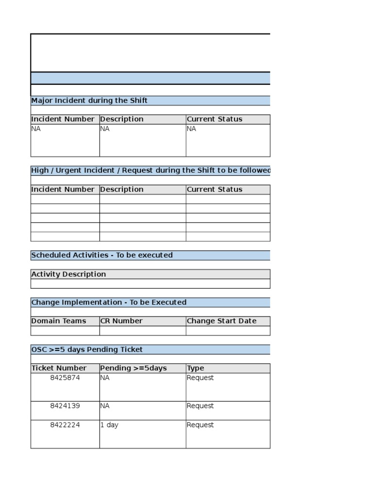 IT Production Support Shift, OnCall Handover Template